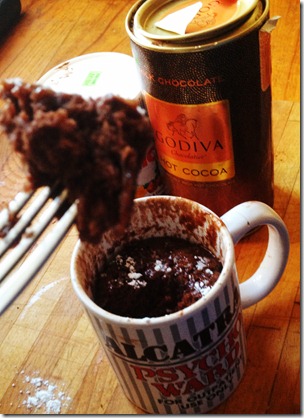 To be totally honest this is not the best chocolate cake I have ever tasted (not even close) but the ability to have a warm chocolate treat in around five minutes from start to finish is just fun if a little dangerous. This is just some fun for a holiday weekend.